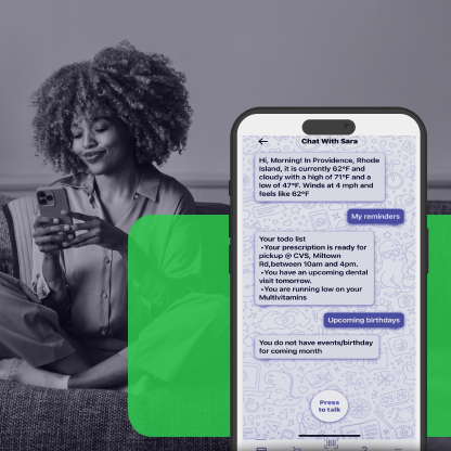 An AI assistant at your senior members’ fingertips who sends reminders for... Medications, Refills, Copay, Grocery